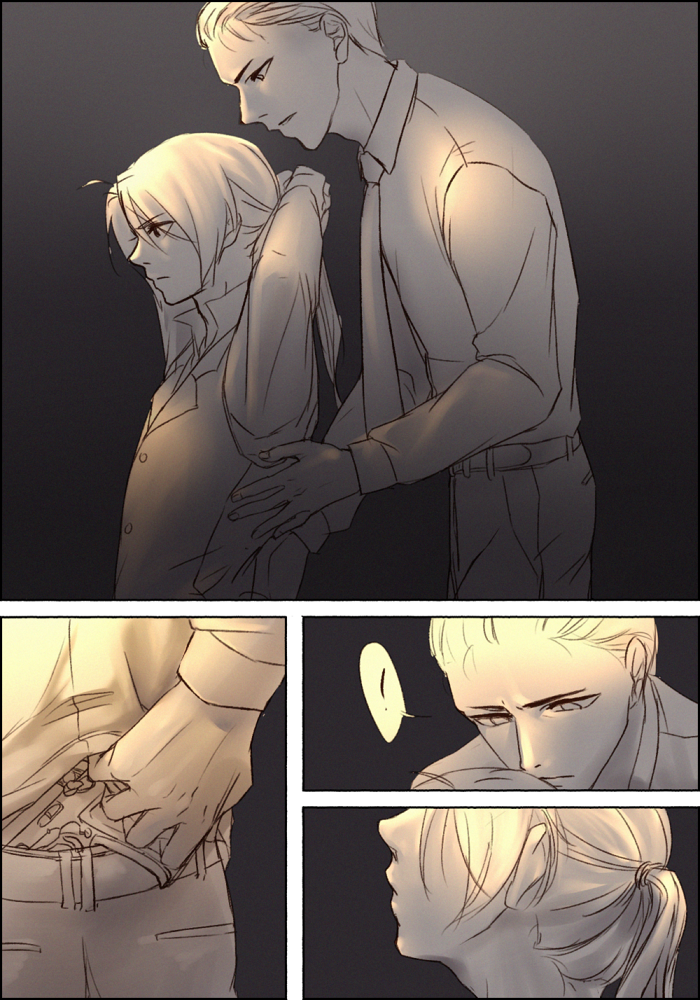 ✿141111*03:33 내가 호모질을 시작한 2005년 호모빔을 맞은 상태로 본 대령과 에드의 관계는 상대방을 '자네'라고 지칭하는게 대령의 권위를 나타내기 좋은 요소였고, 개미만도 못한 강철의 연금술사는 그 권위에 짓눌린채 발악하며 버둥거리는게 내안에서 로이에드의 디폴트나 다름없었음. 이것도 지금 생각해보면 당시 범람하던 로이에드의 대세해석과 그걸 뽐뿌해주던 구애니의 영향이 지대했던거같음