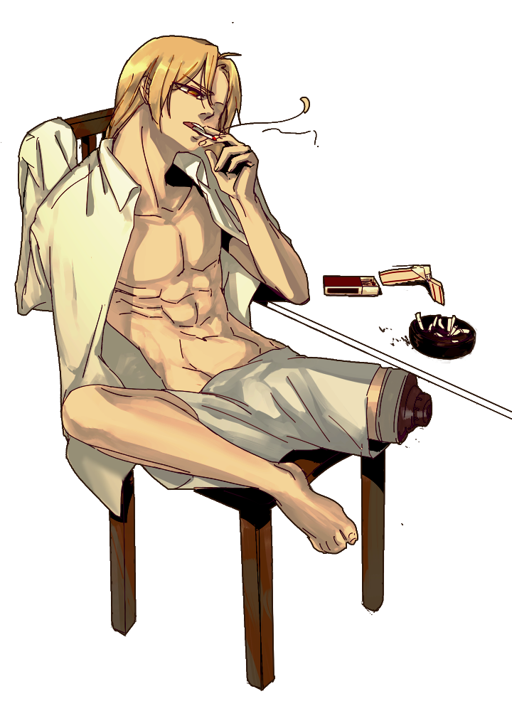 호엔하임이랑 같이살면서 의수 안붙이고 있을때 호엔하임이 들어왓더니 방안이 너구리 굴이였으면 좋겠다... 반라로 식탁에 앉아서 줄덤배피고있었ㅇ으면