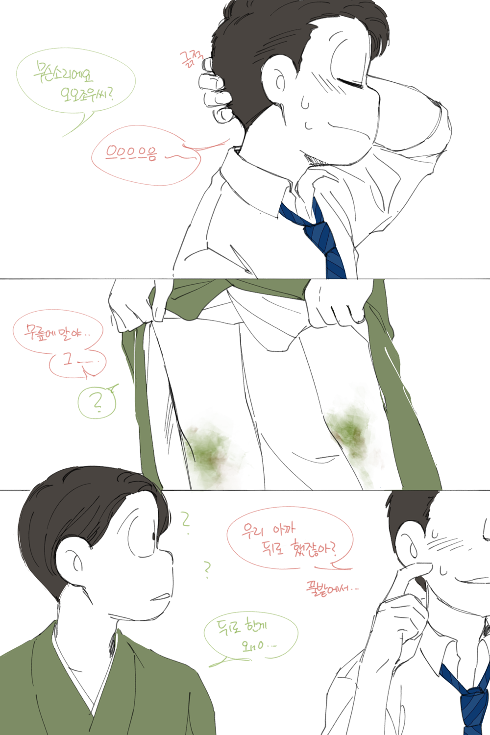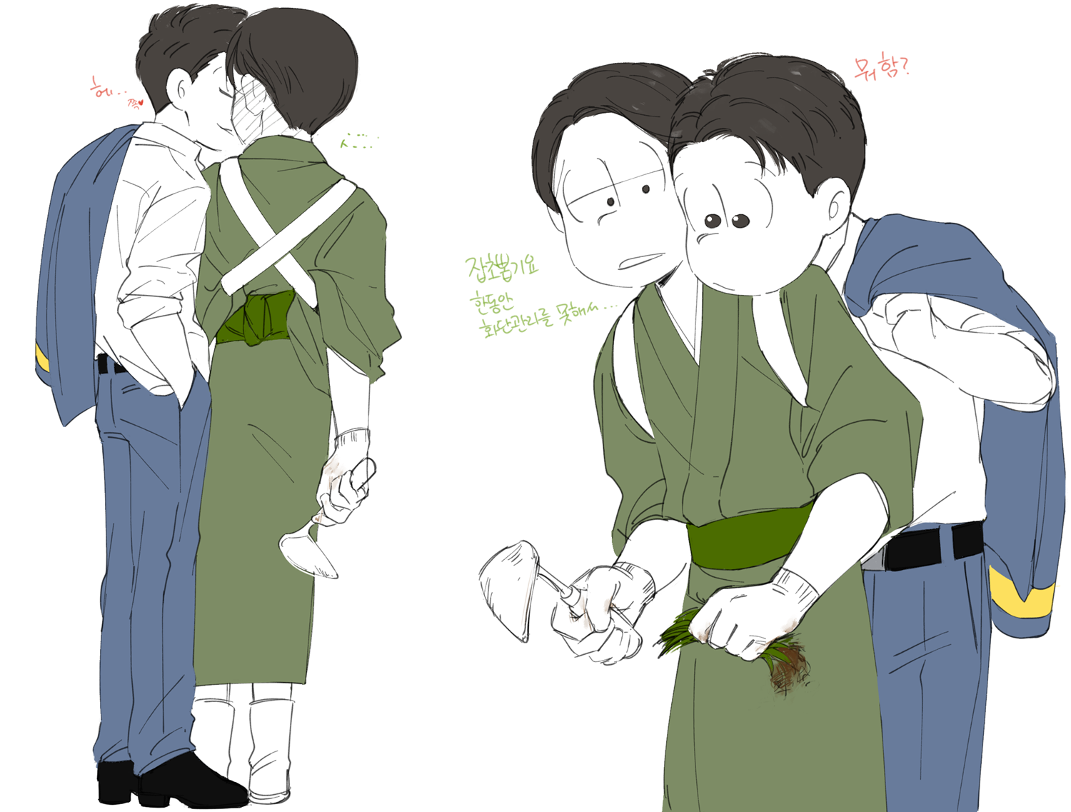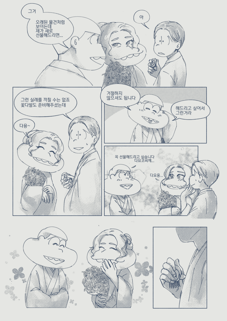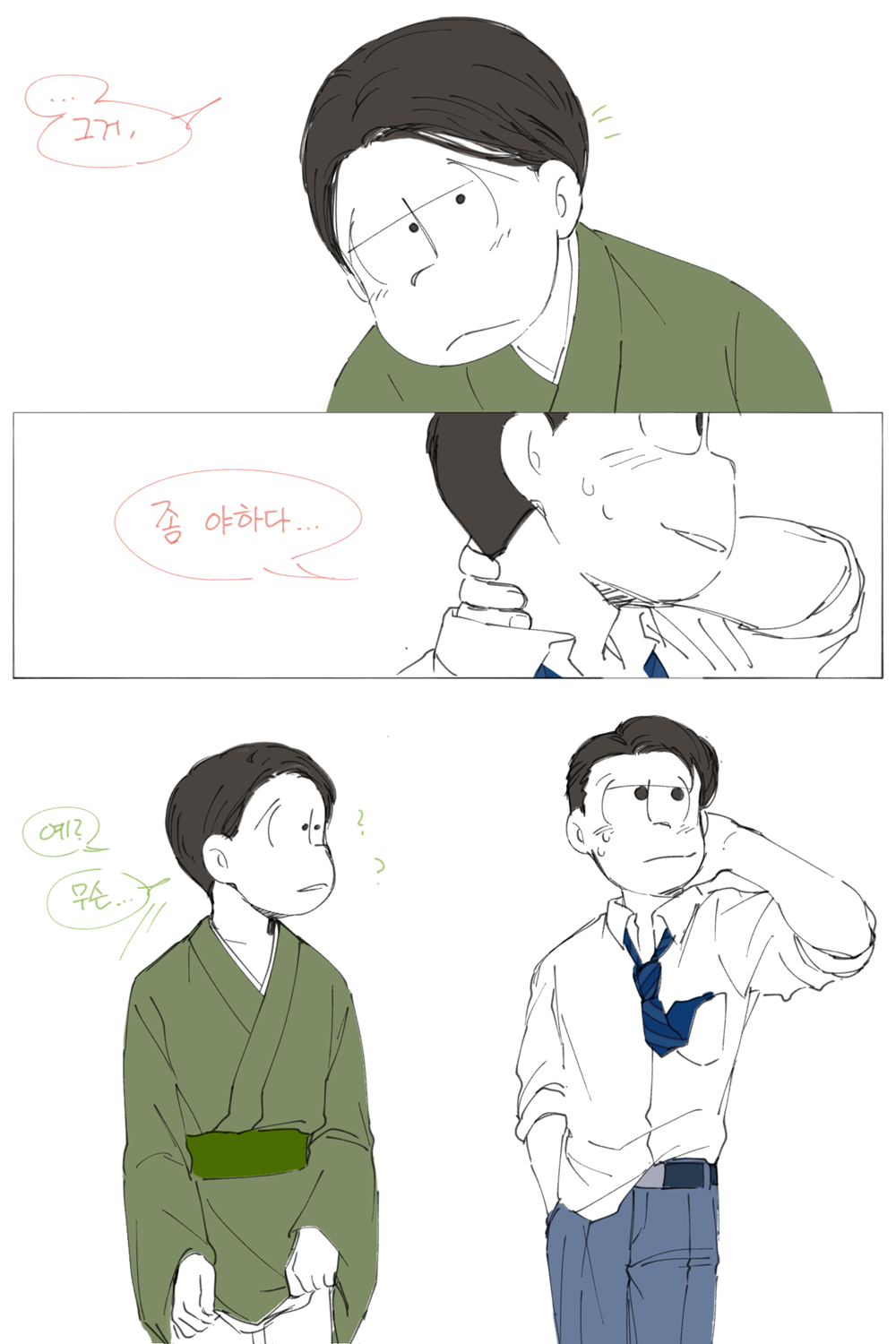 🍏180826*13:58 저 장면 그리느라 저 형제들전부가 처음으로 조우하게되는부분 엄청 많이 읽었는데... 전기마츠 처음 봤을때부터도 생각했던거지만 쵸로스케 처음에 형제들앞에서 울었던거 너무 많은거 느껴짐 존나 내멋대로 생각하는거긴한데 아버지 죽고 하루아침에 가장이 된 부담감이라던가 여동생에 대한 책임감, 그리고 그동안 애비랑 다요코 얼굴보면서 누가봐도 안닮은거 알고 자기도 알아서 안그런척 하고있긴했지만 분명 그동안 유리된 기분 느끼고있었을거라고 궁예함.. 그래서 난데없이 형제라며 나타난 같은 얼굴 여섯을 앞에두고 자기가 어디서왔는지 이제야 알거같아서 아무말하면서 왈칵하고 운거 아닐까ㅋㅋㅋㅋ 근데 형제들도 그 기분 알거같아서 만난지도 얼마 안되고 어떻게보면 첫만남이고 그런사이에 쵸로스케가 조따 뜬금없는 타이밍에 울었는데도 막 ????? 던가 쟤 왜우냐갑자기; 이런 반응이 아니고 아~ 울어버렸다; 라던가 혼자서 너무 무리해온거아냐? 했던 거 아닌가 싶다