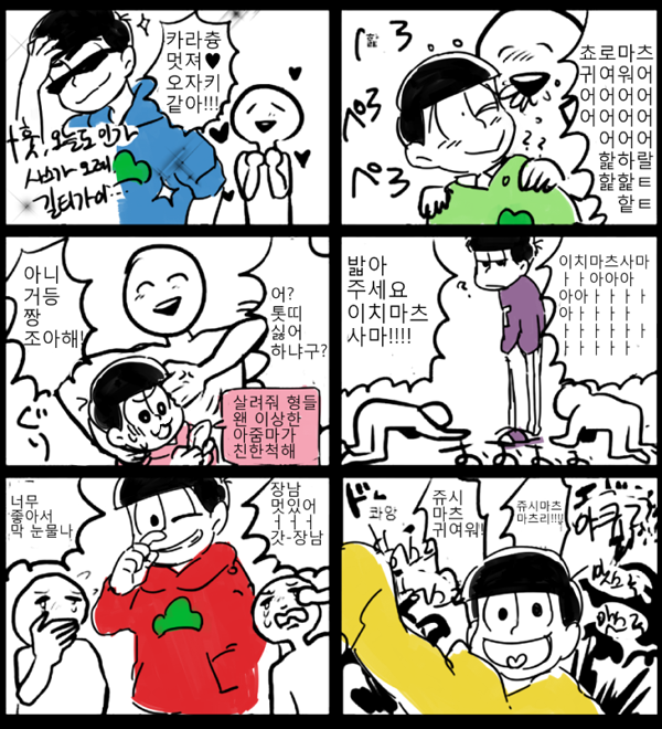 똑같이 생긴 고양이밥주는 남자부분에서 모브들이 기다리던게 이치마츠라는걸 알아들은 카라마츠가 속으로 어.. 뭐지? 이치마츠의 프렌-즈인가? 근데 그렇게보이진않는데 하면서 주춤거렸음. 모브들이 골목으로 돌아넣고 퇴로를 막은 상태라 다른쪽은 막혀있다는걸 알아서 어쩌지하고 생각하는데 무슨생각하냐고 대뜸 뺨맞아서 카라마츠 좀 당황해했으면 좋겠음