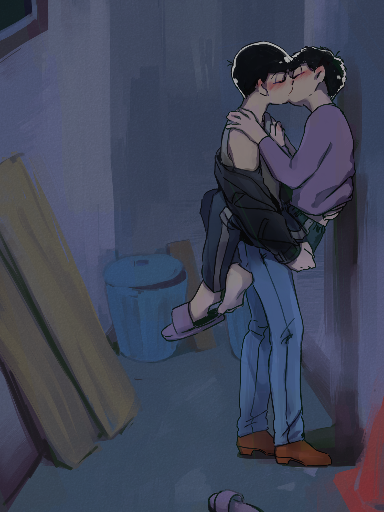 근데.. 아니 뭐랄까 카라마츠랑 저번에 골목길에서 하긴했었는데 이쪽 골목은 항상 자기만 있다고 해야하나 하루종일 고양이들을 만지고 놀아도 골목을 찾는사람이 없는걸 알고있었기 때문에 거기서 카라마츠와 할수있었던거였음 ㅇㅇ 이치마츠가 고양이 먹이주러온대서 카라마츠가 따라왔다가 대뜸 꼴린 이치마츠가 카라마츠 멱쥐고 입맞춘 다음 벽에 밀어붙인거면 좋겠다.. 골목밖에 사람들도 계속 왔다갔다하고 당연히 만류하는 카라마츠를 팔에 가둬서 벽에 몰아넣은 이치마츠가 어차피 아무도 안온다고 '내구역이야' 하고 낮게 말하며 카라마츠의 사타구니를 움켜쥐었음. 결국엔 백기를 든 카라마츠가 그럼 콘돔이라도 끼자고 이치마츠 설득했고 분위기타서 에키벤으로 전희해라..................이치마츠랑 자리바꿔서 벽에몰아넣고 키스하면서 이치마츠 엉덩이랑 허벅지 주무르다가 한쪽다리만 들어서 자기허리에 감게하면 좋겠다. 어쨌든 야외떡이니까 응, 카라마츠도 어쩔수없는 쿠즈고 그래서 집에서 할때보다 더 흥분했으면 좋겠달지... 그자세로도 아직 바지입은 상태라서 바지위로 서로 밀착한 아랫도리 압박하고 비벼가면서 키스했고 잔뜩 흥분해서 이치마츠 잠깐 내려놓고 카라마츠가 주머니에서 콘돔꺼내는데 재빨리 쳐내서 저기로 보낸 이치마츠가 잠깐 카라마츠랑 눈마주치고 뒤돌아서 엉덩이 카라마츠 사타구니에 부비면서 빨리넣어달라고 끼부리면좋겠다; 근데 카라마츠가 이대로 넣으면 다칠까봐 잠깐 머뭇거리는데 이치마츠가 앉아서 펠라하면서 자기도 뒤로 손가락 넣어서 대충 뒤풀고, 그담에 후배위로 하고 에키벤으로 하고! 그게 전부다 동영상으로 찍혀있는거.. 폰으로 찍은거 보여주면서 모브가 이치마츠 입에 좆물리고 깨물면알지^^ 하고 그대로 ㄱㄱ해쓰면ㅎ;;